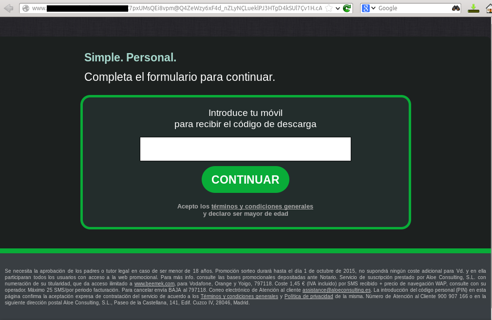 En donde se le pedirán su número de celular para recibir un código de descarga y poder continuar hacia el contenido buscado. Este tipo de engaños buscan únicamente lucrar a costa de usuarios sin muchos conocimientos, ofreciendo información que se puede obtener de forma gratuita.