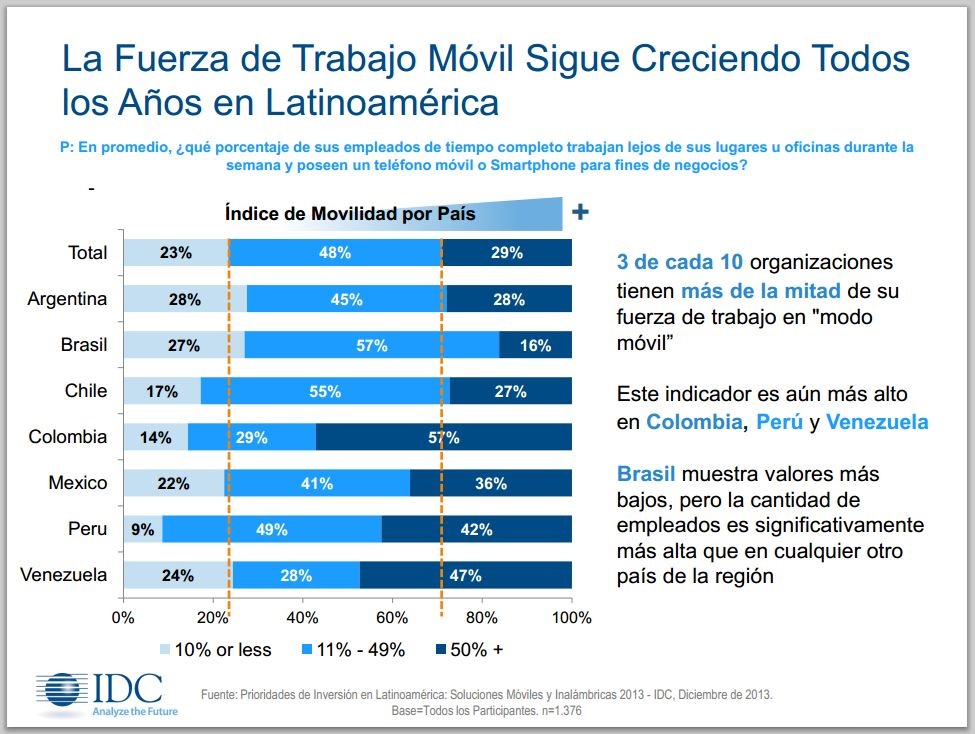 En 2015, las personas que trabajarán con dispositivos móviles superarán los 110 millones en América Latina. Así lo aseguró IDC, a raíz de la adopción de movilidad en la región, uno de los pilares más importantes de la Tercera Plataforma.