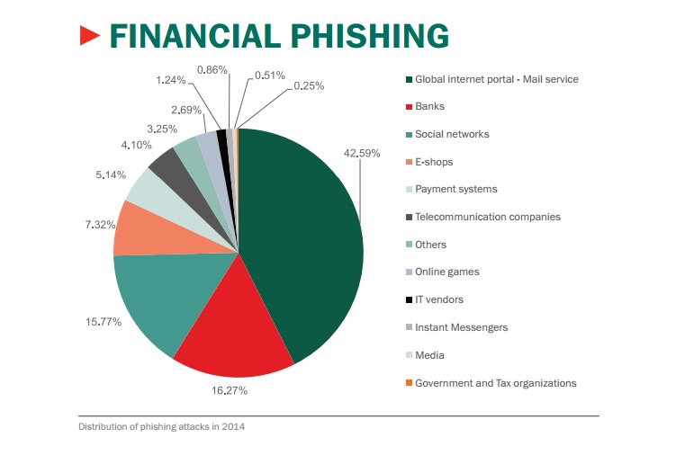 El estudio titulado “Ciberamenazas Financieras en 2014”, realizado por Kaspersky Lab, reveló que el 28,8% de los ataques de phishing en 2014 tenía el propósito de robar datos financieros de los usuarios. Para llevar a cabo sus fechorías, los cibercriminales han cambiado el enfoque de ataque de las empresas financieras a los sistemas de pago y los sitios de compras online.