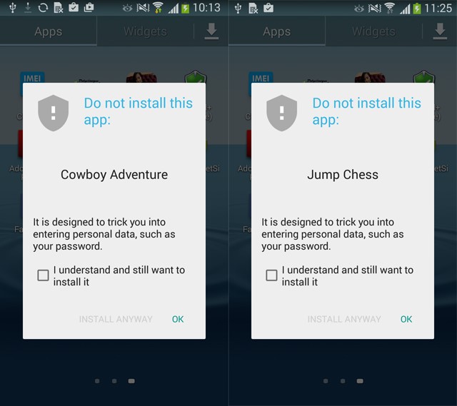 Cowboy Adventure, es uno de los dos juegos de Google Play Store, en los que los investigadores de malware de ESET detectaron la funcionalidad maliciosa. El otro es Jump Chess. A diferencia de otros programas de malware para Android, como las falsas apps de Minecraft, estas contenían la funcionalidad legítima (eran juegos reales) además de incluir el fraude. Cuando se abre la app, aparece una ventana para iniciar sesión en Facebook. Si la víctima cae en la estafa, sus credenciales de Facebook se envían al servidor del atacante.
