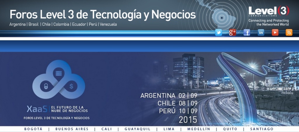 Santiago de Chile, 14 de agosto de 2015.- Level 3 Chile realizará la 7ª versión de su Foro de Tecnología y Negocios el día martes 8 de Septiembre en el Hotel W Santiago, cuya temática en esta ocasión se centrará en XaaS, el Futuro de la Nube de negocios, donde se expondrán las principales derivaciones del concepto XaaS, “Todo como Servicio” (en inglés, Everything as a Service).