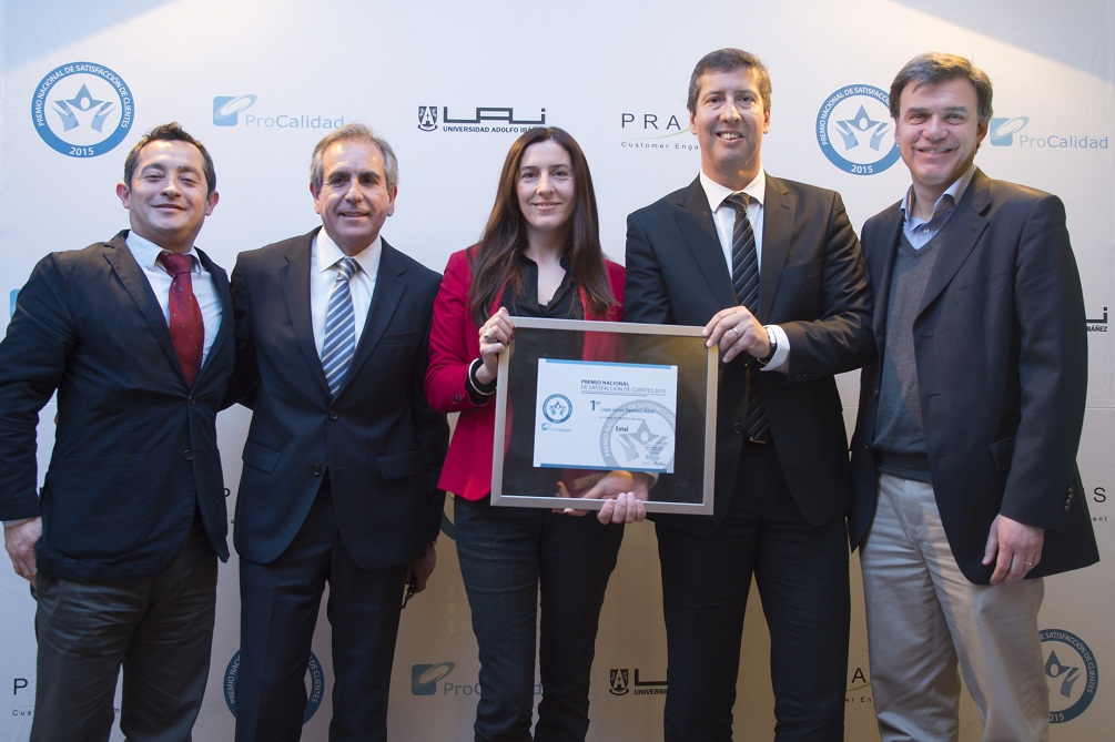 Santiago, 24 de agosto de 2015.- Por décimo tercer año consecutivo, Entel fue destacada con el Premio Nacional de Satisfacción de Clientes ProCalidad, ubicándose en el primer lugar del sector “Telefonía Móvil”.