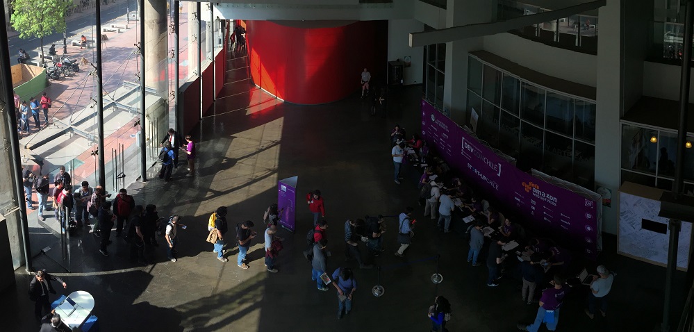 Sabado 06 de Septiembre de 2015.- Instancias de relacionamiento, actualización de conocimientos y análisis de experiencias, fueron la tónica que marcaron el primer día de la Developer Conference Chile 2015, evento que convocó a más de mil asistentes, quienes atiborraron la sede central de la Universidad San Sebastián, para participar en las más de 40 charlas y 30 talleres ofrecidos.