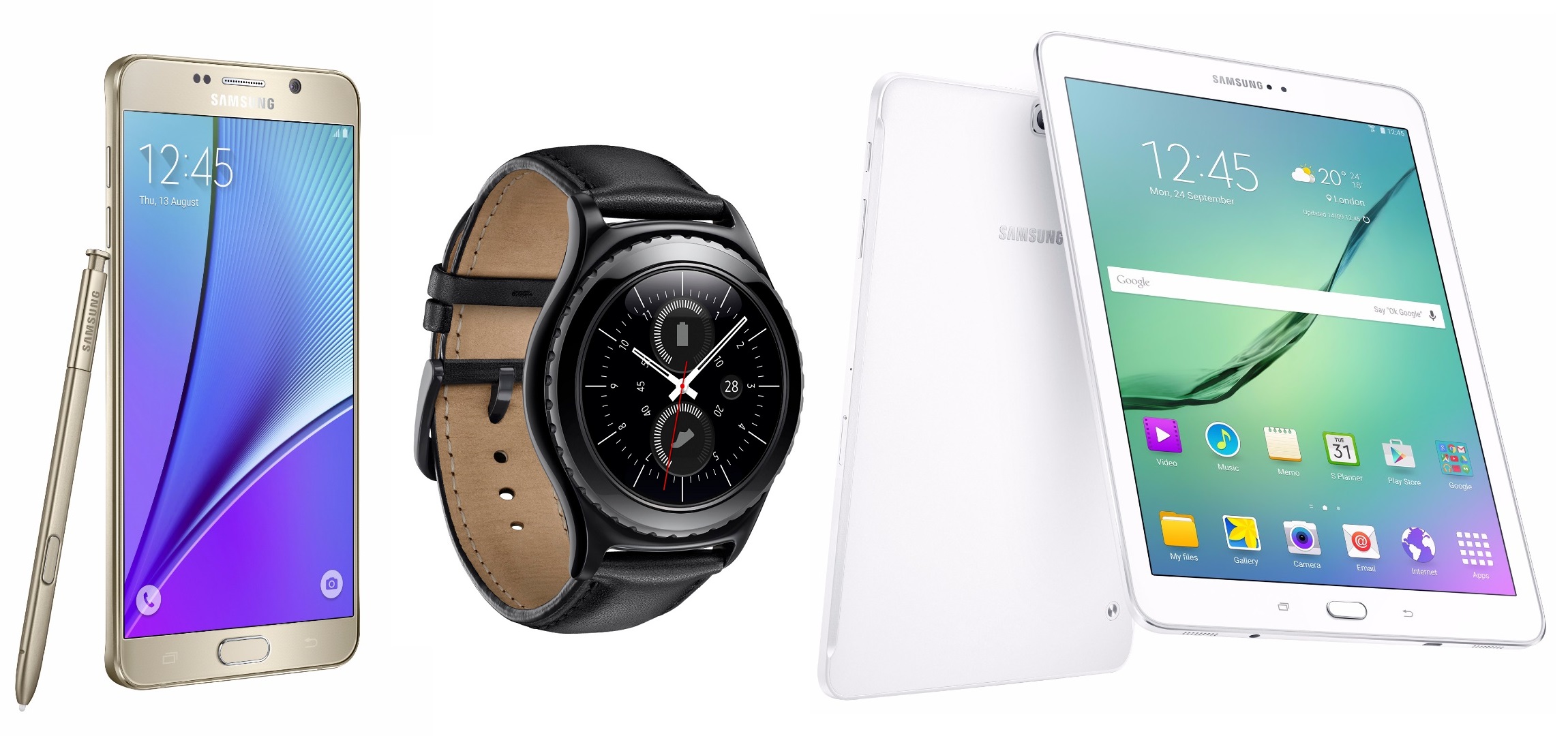 Dentro de los productos que Samsung lanzó hoy se enumera el Galaxy Tab S2, destacado como el tablet más delgado del mercado y el Galaxy Note 5, el smartphone con pantalla grande ícono de la compañía. Además del esperado reloj inteligente Gear S2.