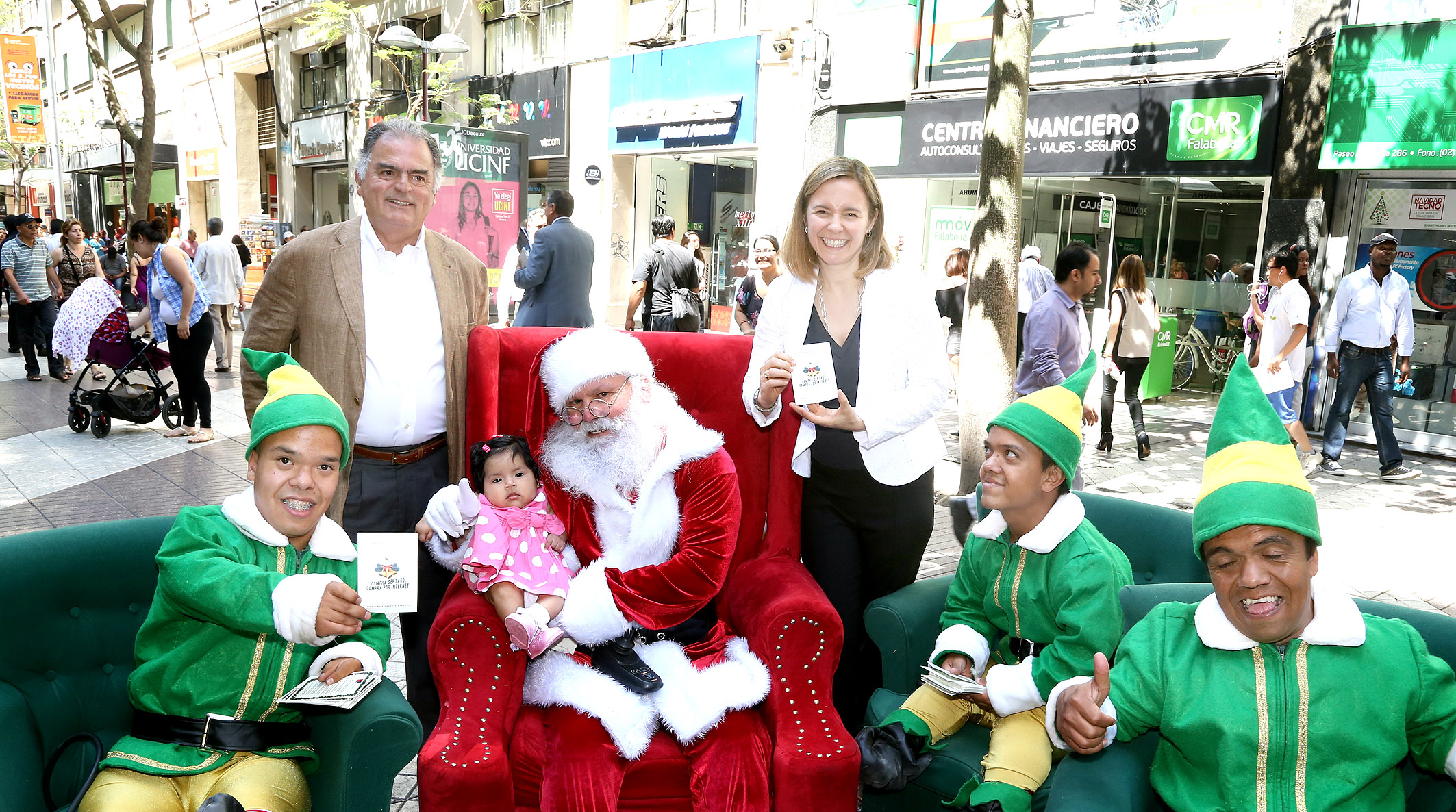 En el lanzamiento de la campaña “Simple, seguro y sentado”, la subsecretaria de Economía, Katia Trusich y el secretario general de la CCS, Cristián Garcia-Huidobro, entregaron información con consejos de la compra segura por internet, junto al Viejo Pascuero y los duendes de la campaña (https://youtu.be/E-GV48nwOQk), en el paseo Ahumada.