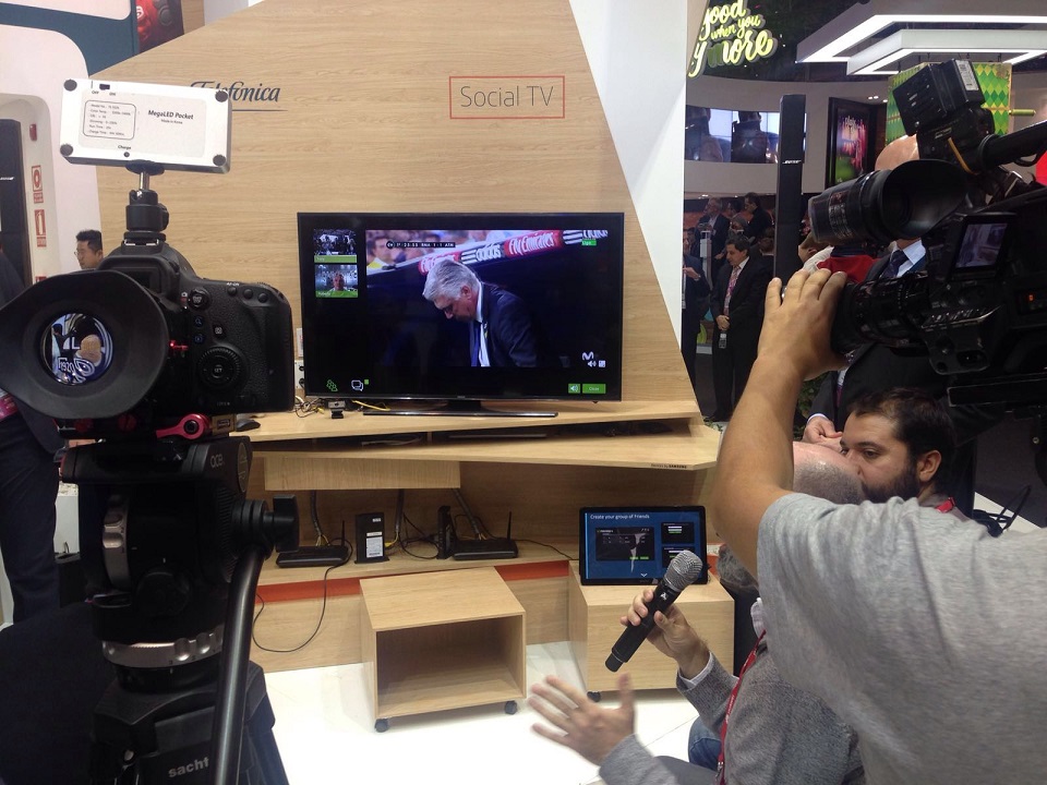 Barcelona, 23 de febrero de 2016.-Telefónica ha presentado en el Mobile World Congress 2016 de Barcelona, un servicio que integra las redes sociales y la interactividad audiovisual. Se trata de la “TV Social”, que permitirá al usuario interactuar con otras personas directamente desde la pantalla del televisor.