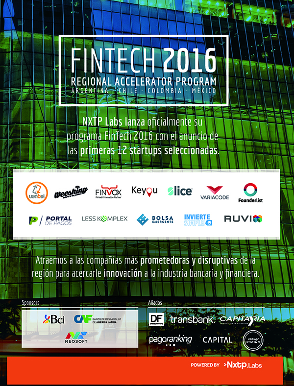 Santiago, Agosto de 2016. NXTP Labs seleccionó las primeras 12 compañías que integrarán la edición chilena de su programa regional de Aceleración Fintech 2016.