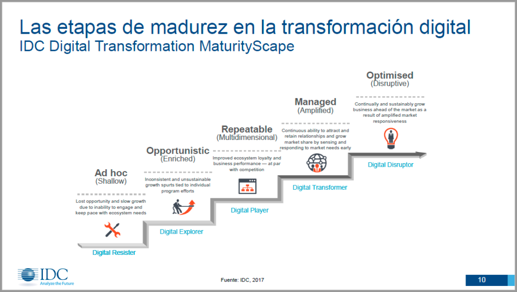 “Es necesaria una transformación de los procesos de la organización y el tiempo es ahora. Según nuestra encuesta MaturityScape, casi un 40% de las empresas en Latinoamérica se encuentra recién en la segunda fase de digitalización, mejor conocida como explorador digital, donde la organización define la necesidad de desarrollar estrategias de transformación digital de forma aislada”. Diego Anesini, Director de Investigación para IDC Latinoamérica