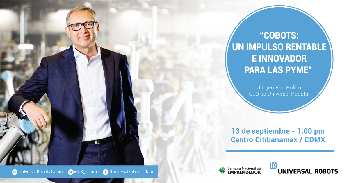 Ciudad de México, septiembre 04, 2018 – Universal Robots, pionero y líder del mercado de robots colaborativos, anuncia su participación en la Semana Nacional del Emprendedor 2018 que se llevará a cabo del 10 al 14 de septiembre en el Centro Citibanamex de la Ciudad de México.