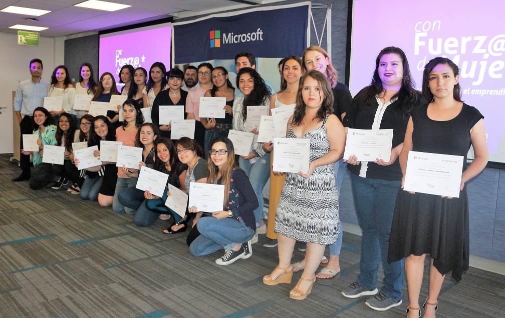 La ceremonia contó con la participación Sergio Rademacher, Gerente General de Microsoft Chile; Alex Pessó, Director de Asuntos Públicos de Microsoft Chile; Denisse Goldfarb, Directora de Personas de Microsoft Chile; Mirko Salfate, Director Nacional del Instituto Nacional de la Juventud (INJUV); Paola Diez Berliner, Directora Nacional de la Fundación Promoción y Desarrollo de la Mujer (PRODEMU); Marcia Machado, Coordinadora Nacional de Género de Corfo y Francisco García, Responsable del Área de Educación y Cultura, Doble Impacto.