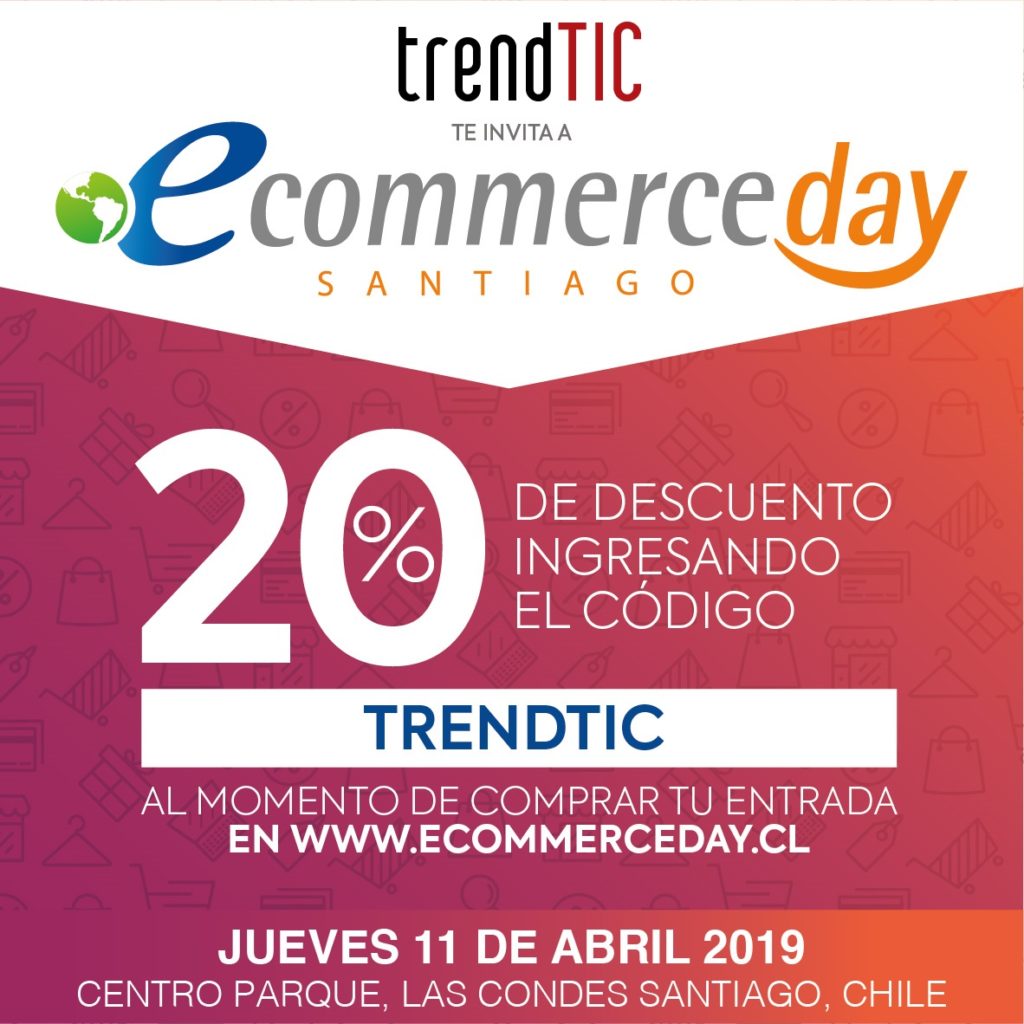La Cámara de Comercio de Santiago (CCS) y el Instituto Latinoamericano de Comercio Electrónico (eCommerce Institute) realizarán el jueves 11 de abril, a partir de las 8:30 horas, el “eCommerce Day Santiago 2019”, en Centro Parque, Presiente Riesco 5330, Las Condes.