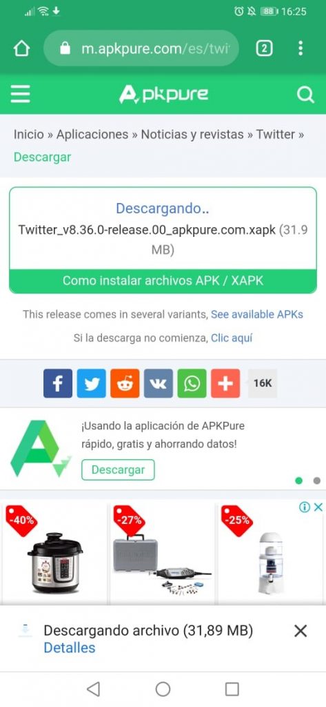 (Descargando la APK de Twitter)