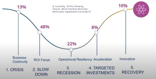 - 48% de las organizaciones de la región indicaron que se ubican en la segunda etapa del ciclo de recuperación de la pandemia, enfocándose en el manejo eficiente del ROI.