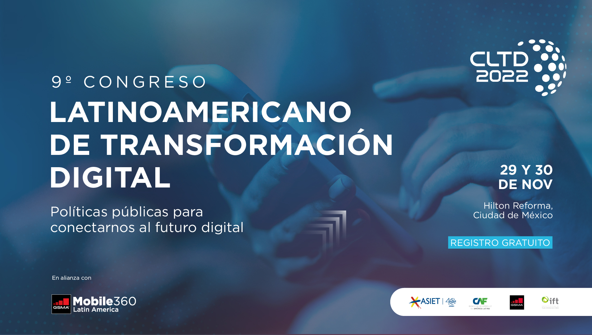 - Ministros y reguladores de toda la región ya confirmaron su presencia en el 9° Congreso Latinoamericano de Transformación Digital (CLTD) que tendrá lugar el 29 y 30 de noviembre en el Hilton Reforma, en alianza con Mobile 360 Latin America y con registro gratuito.