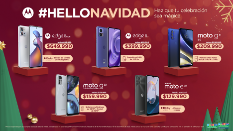 Chile, 08 de diciembre de 2022.- Se acercan días mágicos para niños y adultos que ya piensan en sus deseos de navidad, y entre quienes esperan compartir la alegría de estas fiestas, son varios los pascueros y pascueras que salen en busca del obsequio ideal para conseguir la magia de regalar. Pensando en ayudarlos durante su difícil misión, Motorola ya lanzó grandes descuentos incluso en sus equipos de gama alta recién presentados en nuestro país. Conoce los precios rebajados y las mejores opciones que estarán disponibles hasta el próximo 31 de diciembre.