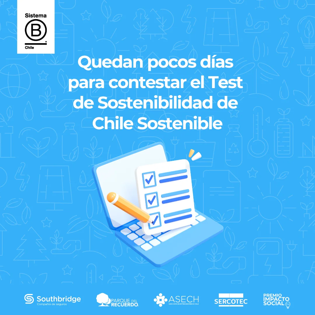 - ¿Tienes una pyme y quieres contribuir a un futuro con Triple Impacto? La Iniciativa Chile Sostenible, impulsada por Sistema B Chile en conjunto con las Empresas B Parque del Recuerdo y Southbridge, te invita a medir el impacto económico, ambiental y social de tu negocio.