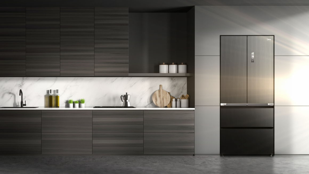 Recién lanzados al mercado, hay dos modelos de refrigeradores Perfect Fit: el Midea MDRFD705BIE70, un modelo French Door, lo que quiere decir que tiene cajones y puerta; y el Midea MDRMD706BIE70, un modelo Multidoor con cuatro puertas. Ambos tienen el freezer en la parte inferior.