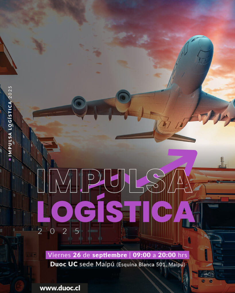 Santiago, 24 de septiembre de 2025. – La Escuela de Administración y Negocios de Duoc UC, en alianza con Conecta Logística, presentará este viernes 26 de septiembre Impulsa Logística, un encuentro abierto a la comunidad que busca acercar el mundo de la logística y sus principales desafíos. La cita tendrá lugar en la sede Maipú de Duoc UC, de 9:00 a 20:00 horas, y ofrecerá charlas magistrales, conversatorios, trade shows interactivos y espacios de networking. La inscripción es gratuita en este link.