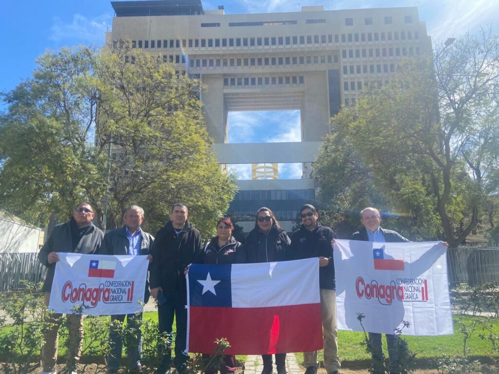 Santiago, 30 de septiembre de 2025. Representantes de la Confederación Nacional de Trabajadores Gráficos (CONAGRA) junto a dirigentes sindicales de la empresa BO Packaging y de la Compañía de Fósforos de Chile manifestaron su gran preocupación por la próxima entrada en vigencia de la etapa final de la Ley de Plásticos de Un Solo uso, que en febrero de 2026 prohibirá el uso de utensilios de cartón, papel, cartulina y otros materiales, en locales de alimentación de todo el país.