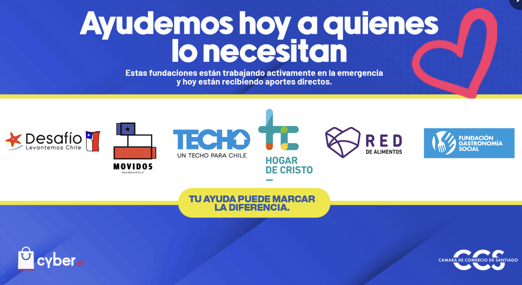 - A través de Cyber.cl, la Cámara de Comercio de Santiago está facilitando un canal seguro y confiable para que empresas y personas colaboren con organizaciones que trabajan en terreno ante esta emergencia.