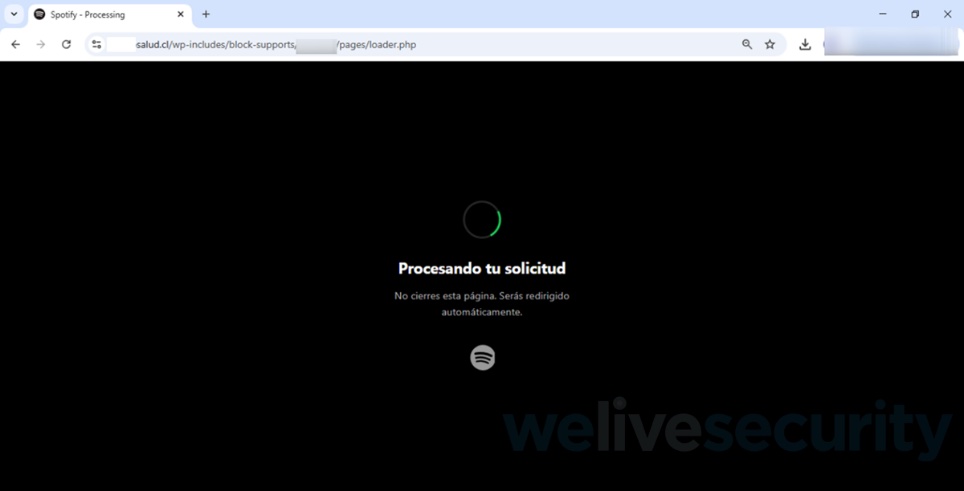 En los últimos días fueron detectaron dos casos en los que suplantaron a la imagen de la marca Spotify, y donde los ciberdelincuentes aprovecharon sitios comprometidos de pymes de la región para alojar páginas que simulan ser de este servicio de streaming dentro de un dominio legítimo. De esta forma, confunden a los usuarios al combinar la utilización de una marca conocida con un dominio en el que confían. La página de phishing queda en un entorno de dominios válidos que aumenta la sensación de seguridad. Según los expertos en ciberseguridad,, esto hace más probable que una persona caiga en el engaño si no se verifica cuidadosamente el dominio completo.