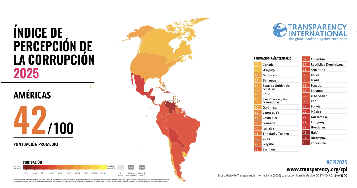 Ferreiro agregó que “el estancamiento del puntaje refuerza la importancia de analizar de manera sistemática el desempeño institucional, así como la efectividad de las políticas públicas orientadas a la prevención, detección y sanción de la corrupción. Este resultado debe leerse como una llamada de atención urgente. La corrupción no solo daña la confianza, sino que impacta directamente en la calidad de los servicios públicos, en la igualdad ante la ley y en la democracia. Sin decisiones políticas claras y reformas efectivas, el estancamiento puede transformarse en retroceso”.